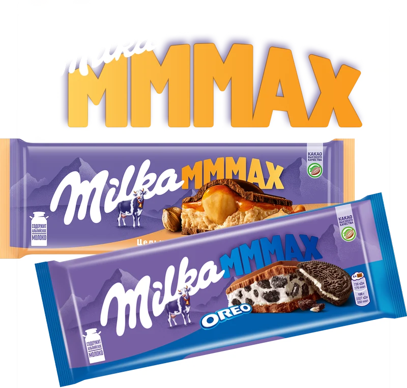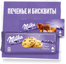 **Choco Cookie — печенье с кусочками шоколада, Choco Cow — печенье в форме коровы, покрытое шоколадом, Soft&Choc — бисквит с шоколадом