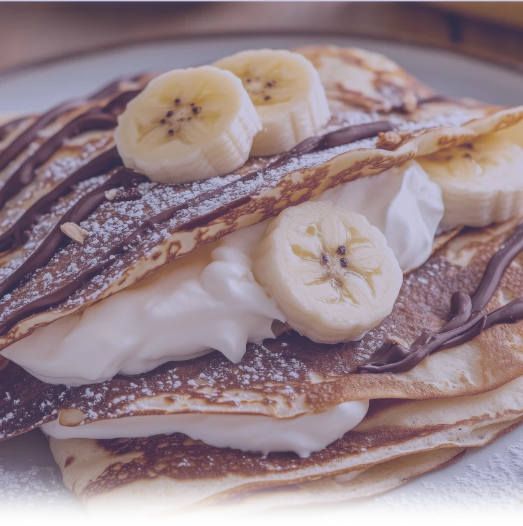 Выложите блинчик на тарелку, смажьте ореховой пастой Milka. Сверху выложите несколько колечек банана и посыпьте дроблеными фисташками. -